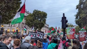 Thankfully the police presence throughout the day was light. There were police cars circling the march but they seemed to struggle to follow the route and didn’t intervene. At the end the march returned to parliament square and several police officers came over from two vans. After a few minutes they left. Organisers had handed out masks to prevent people being photographed or identified, and almost everyone simply said ‘no comment’ if approached by any cop.